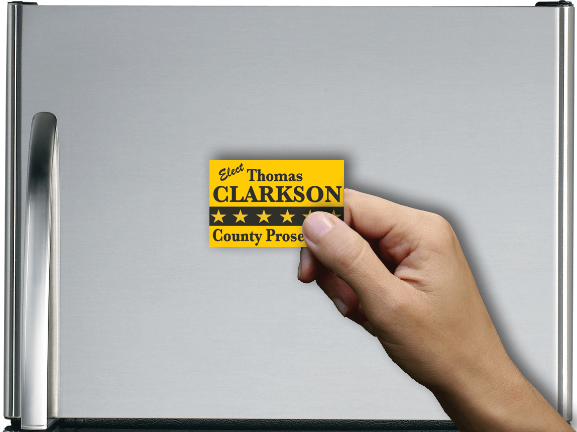Cost-effective Mini Magnets to promote your campaigns message for placement on a refrigerator, filing cabinet, toolbox, or locker.