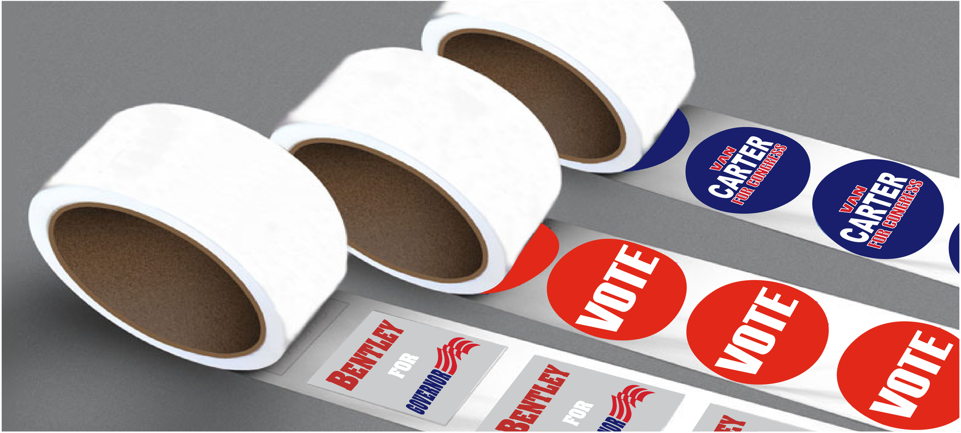 4-Color Process Roll Labels on White Gloss Paper in a variety of Shapes and Sizes.